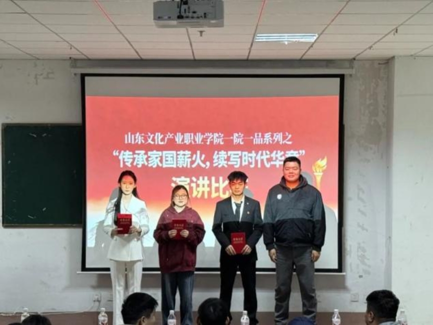 为凝聚青年力量、弘扬家国精神,12月11日山东文化产业职业学院举办“传承家国薪火,续写时代华章”主题演讲比赛。