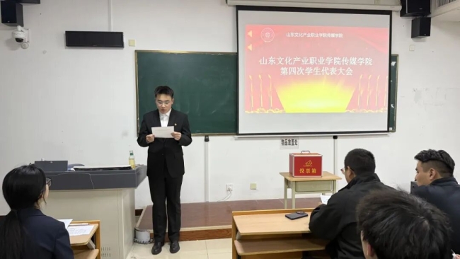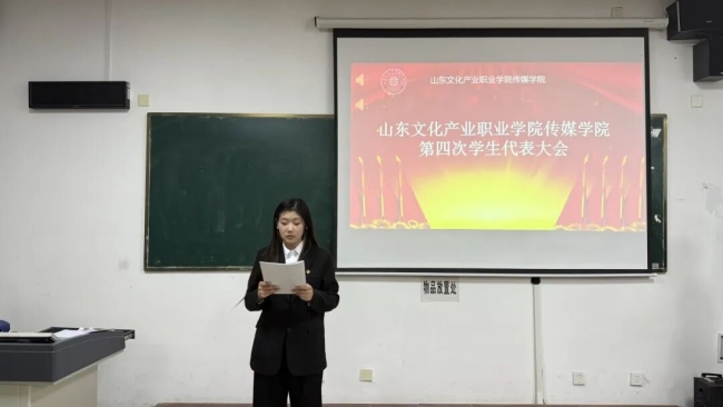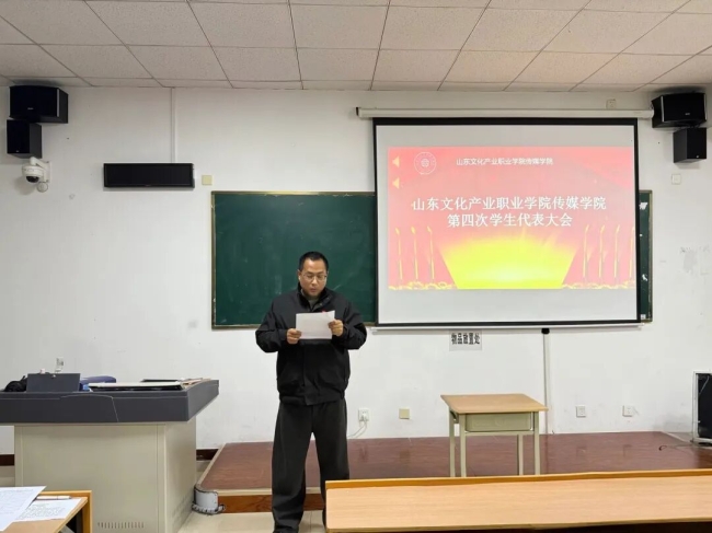 为进一步加强学生会组织建设,规范学生干部队伍管理,提升学生干部的工作能力,推动学院学生工作高质量发展,山东文化产业职业学院传媒学院于2025年11月18日下午17:00在综合楼333教室召开第四次学生代表大会。