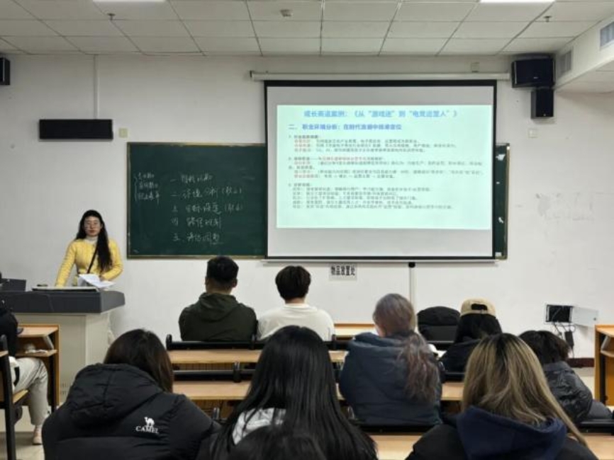 王丽媛老师,围绕大赛规则与赛道选择展开。通过对比成长赛道与就业赛道的评分标准、解析优秀案例结构、开展自我适应度测评,帮助学生明确适合自身发展的赛道方向,为后续规划奠定基础。