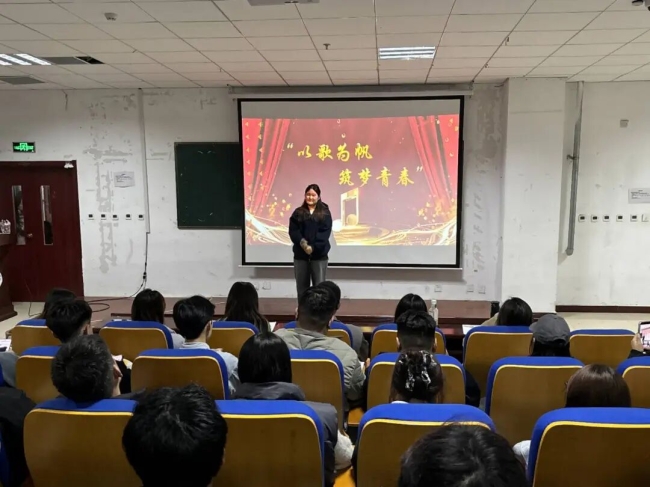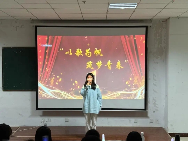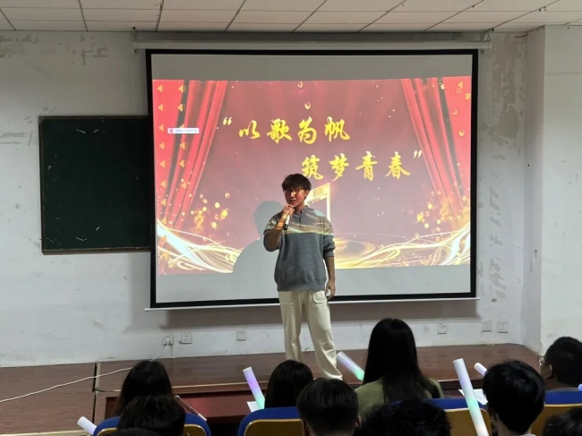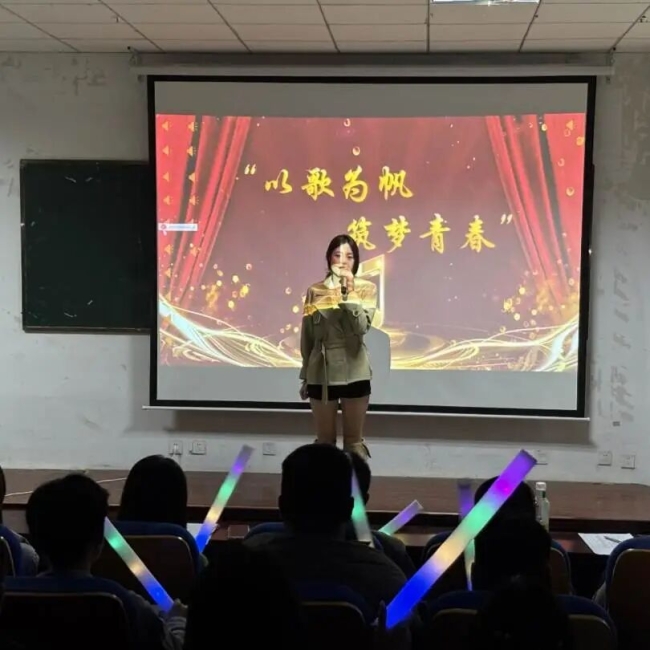 比赛当晚,现场座无虚席,炽热的目光与阵阵掌声交织成一片温暖的海洋。“用歌声传递热爱,用旋律点燃青春!”主持人李秋乐的开场白一落,瞬间点燃全场氛围。她先是向莅临现场的老师们致以诚挚问候,又向每一位到场支持的观众表达谢意。话音刚落,现场便静了下来,所有人的目光齐刷刷投向舞台中央,满心期待着精彩开启。