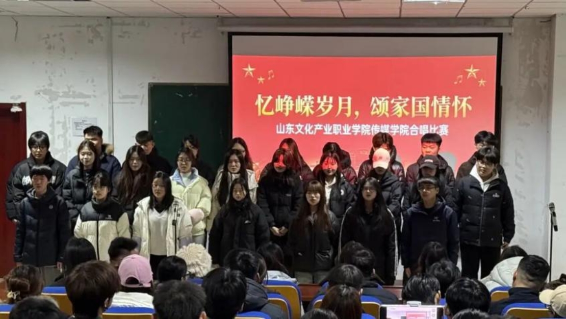 为纪念一二·九运动,传承爱国精神,12月9日,山东文化产业职业学院传媒学院成功举办“筑梦新时代,颂歌献祖国”一二·九班级合唱比赛。